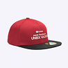 Fitted baseball caps — those without an adjuster — are normally sewn in six sections, and may be topped with a matching fabric-covered button (also called a squatchee) on the crown. Metal grommets or fabric eyelets are often sewn or attached near the top of each of the six sections of fabric to provide ventilation. In some cases, the rear sections of the crown are made of net-like mesh material for extra ventilation. The peak is typically stiffened by a sewn-in piece of paperboard or stiff plastic.